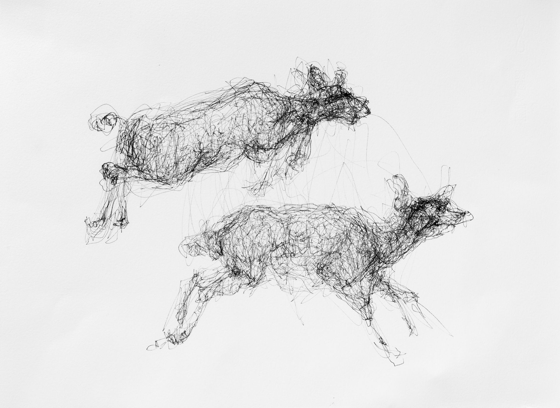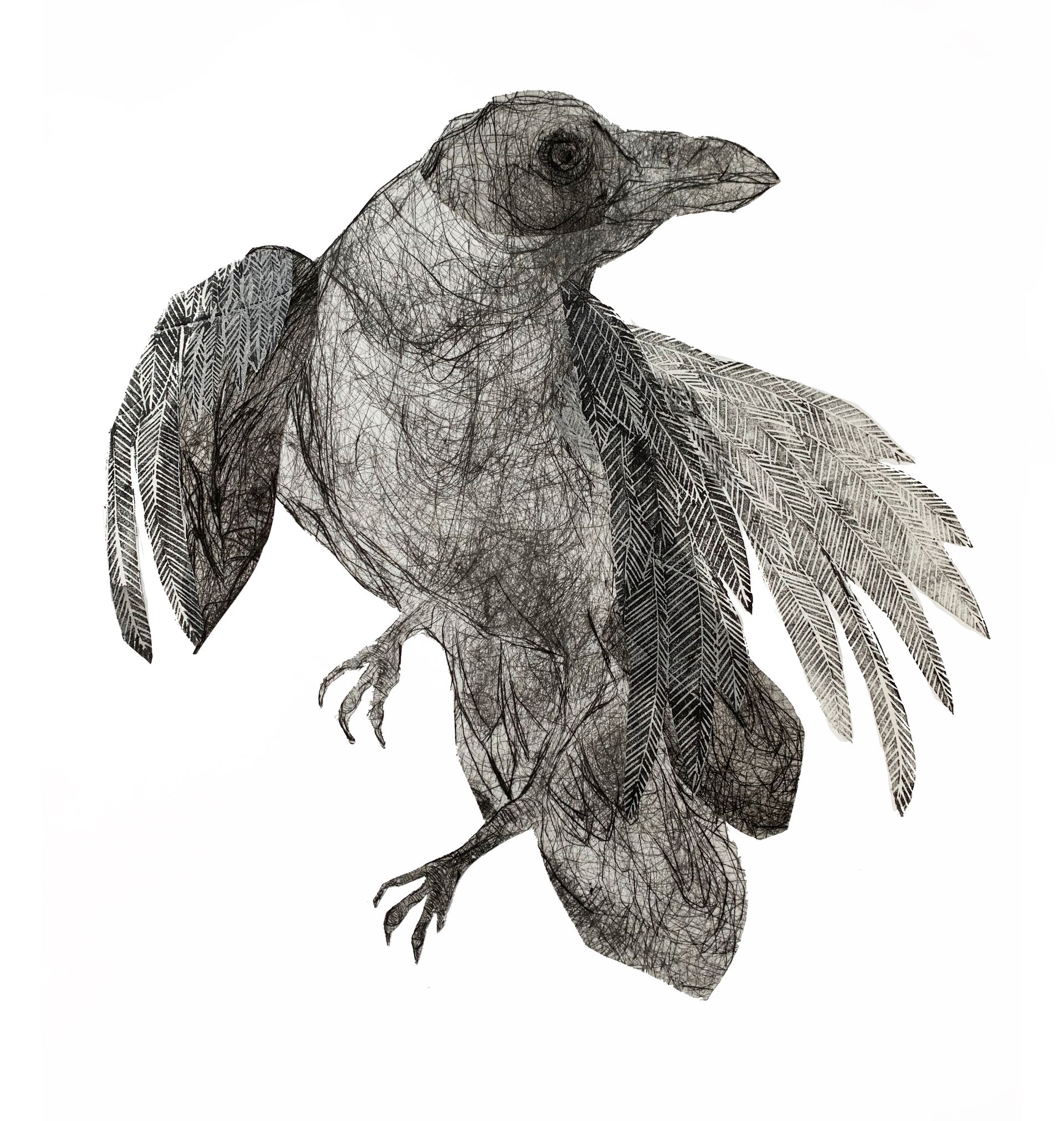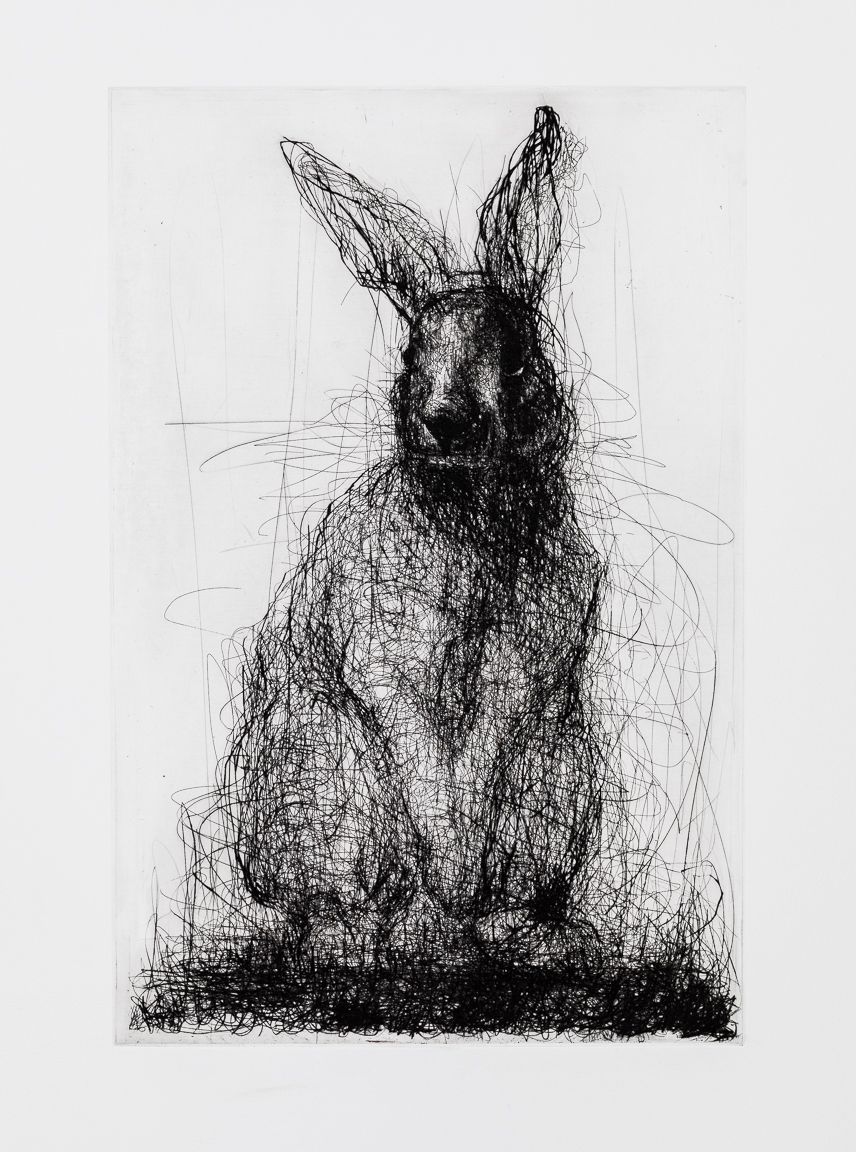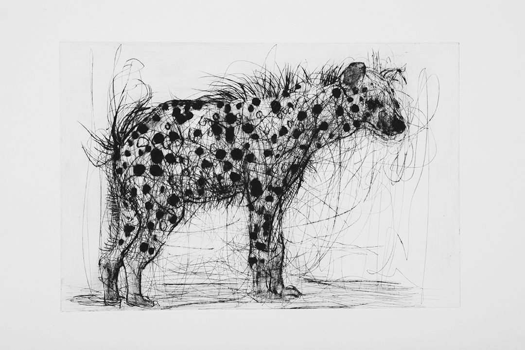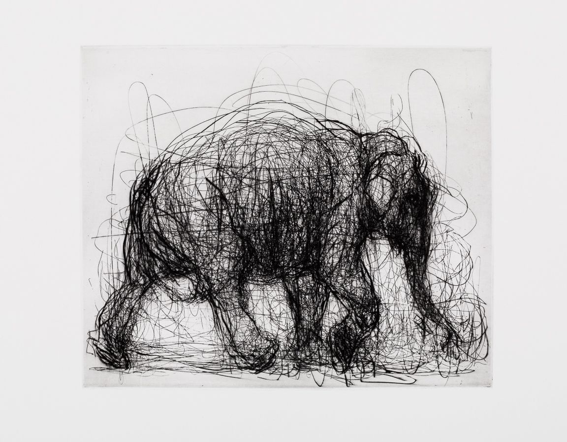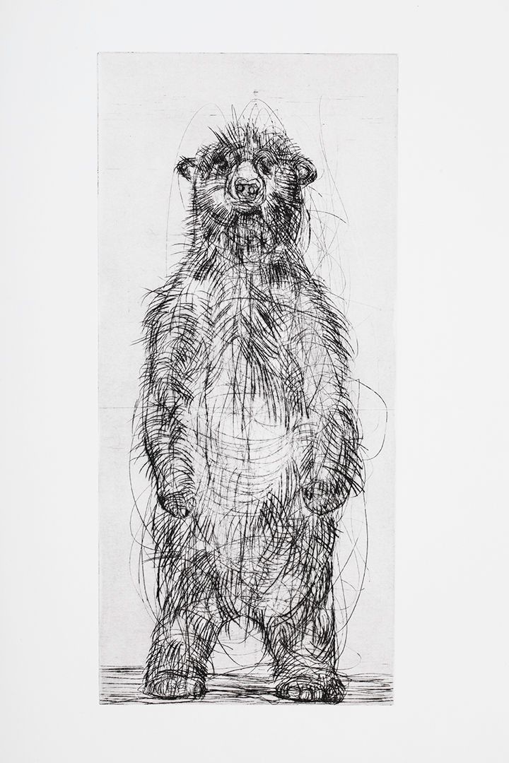 This work explores printmaking materials and methods in a series of loosely rendered animals. Searching for a state of flux, gesture, and form, which ultimately explores the liminal state between man and nature. Through etching and drypoint, I move between aggressive and delicate line work as the image emerges.